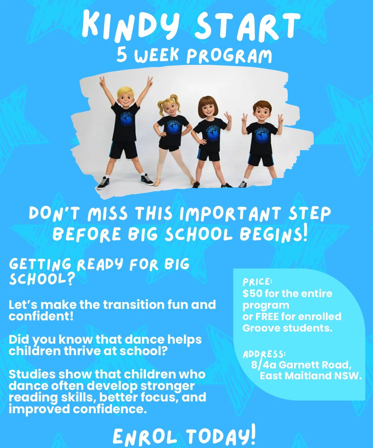 This program is run at a time when most school readiness programs have finished — making it a great opportunity to continue learning and building confidence right up to the start of school.